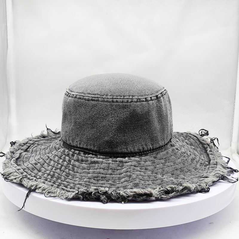 Style: grey old washed denim bucket hat