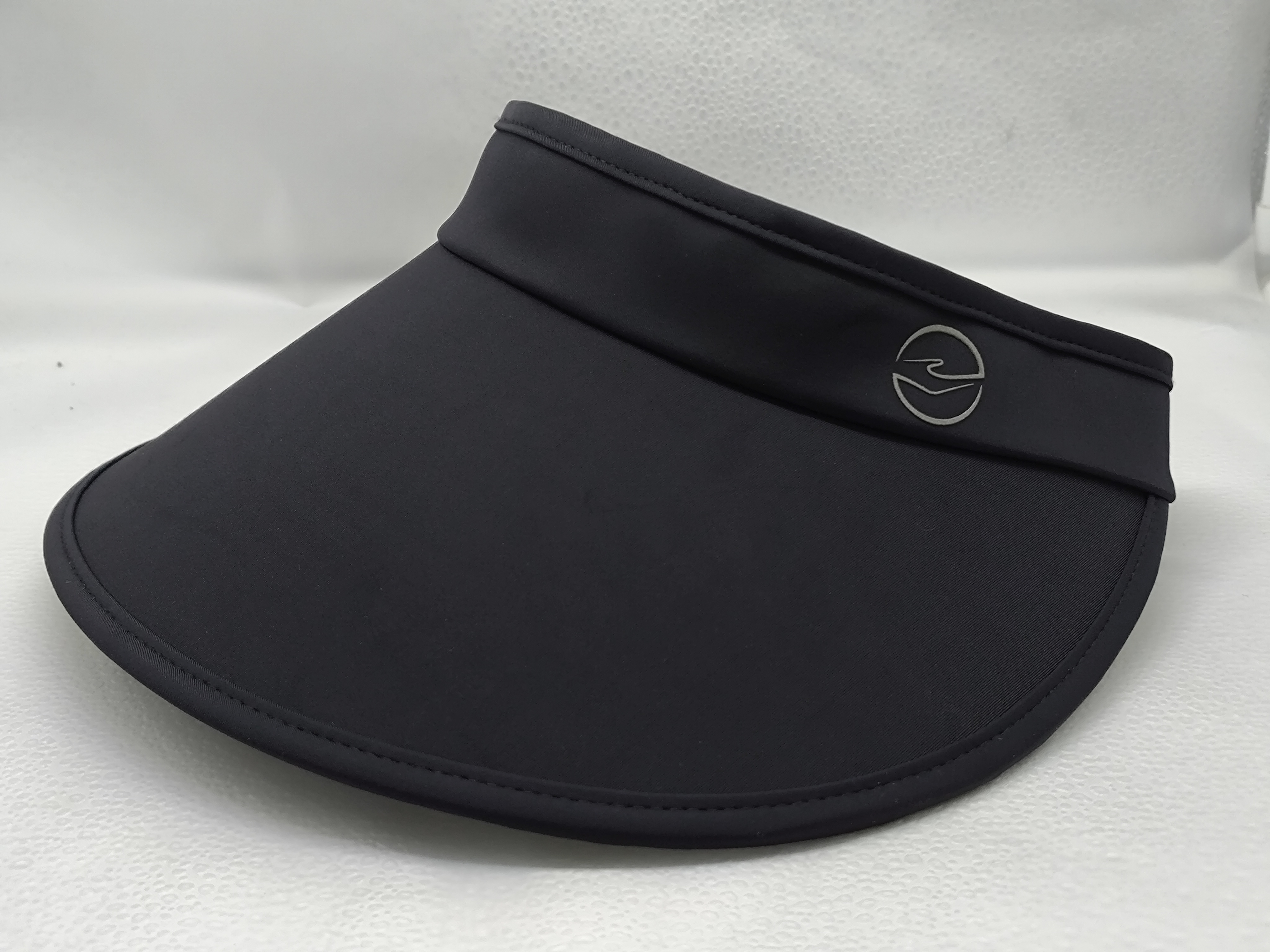 "This is a white visor hat featuring rhinestone-embellished 'SWAN' lettering on the front band. It’s designed with a brim for sun protection, using decorative rhinestone application as the key craft."