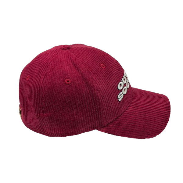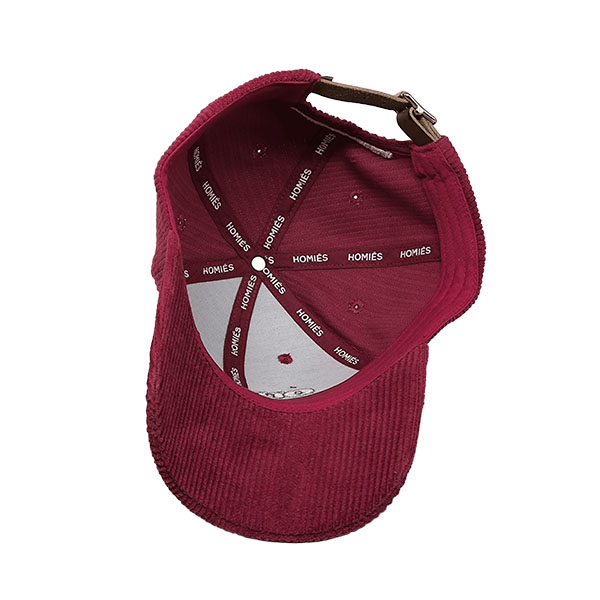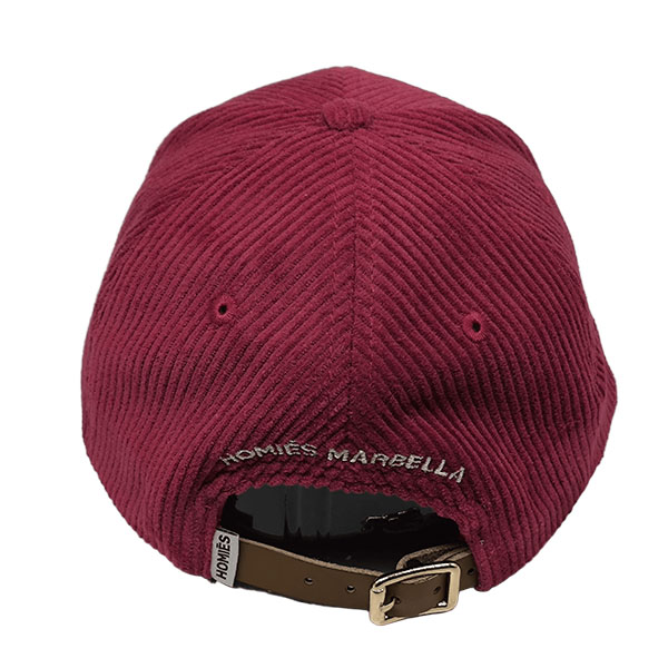 PRODUCT DETAILS *style: curved brim 6 panel baseball cap *composition: cap 100% corduroy and belt 100% leather *design: text 3D embroidered on the front, text embroidred and label on the back and text printed inside *color: red *size: adjustable buckle - 56 to 60 cm |
