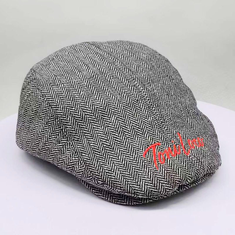 Style: men's striped flat-top beret Composition: 100% woolen Techniques: flat embroidery Color: grey Size: 58 cm |